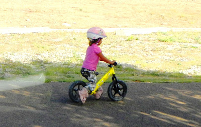On a lighter note, I want to show you some photos of a little camper who was riding bikes with her big sister and her dad. They were here for a few days, and I so enjoyed watching her "ride" her bike past The Palms. This little girl must have strong legs and a determined spirit, because she pretty much kept up with sis and dad.